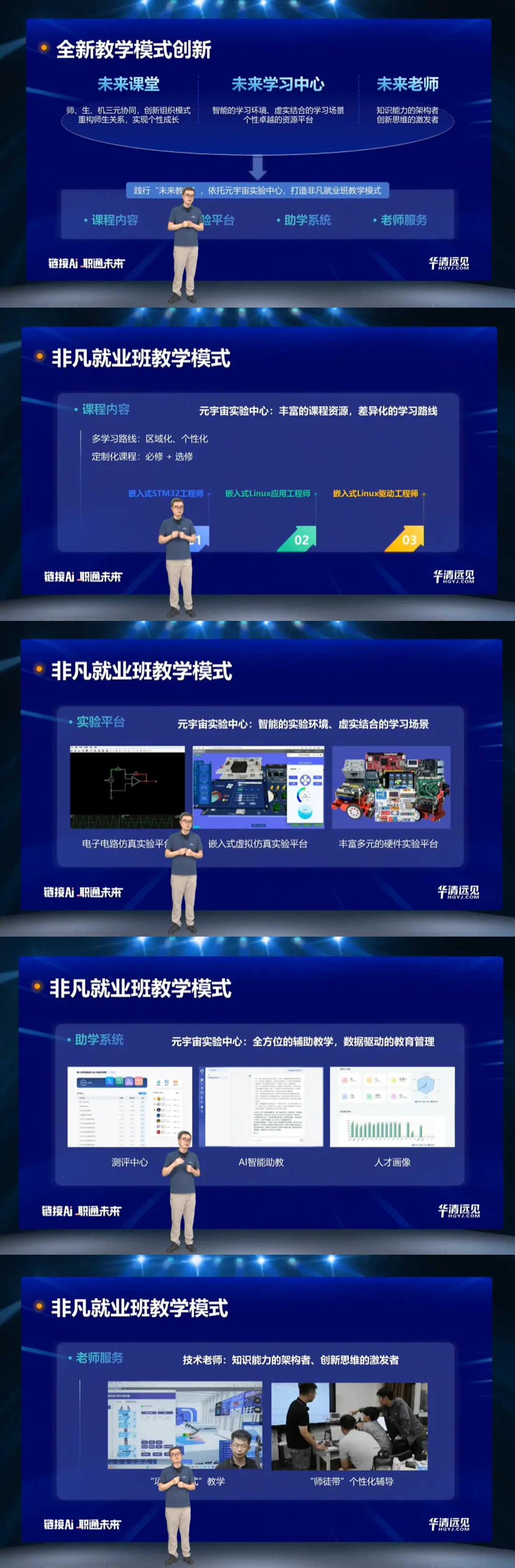 作为一家科技教育公司,华清远见始终致力于智能化教育新生态的持续探索。本次新品发布会上,公司正式推出以“虚实融合・软硬协同”为核心的智能化教育新生态,涵盖从基础实训套件、智能硬件教学设备,到虚拟仿真软件在线实验平台等一系列产品与解决方案,实现从传统就业培训到“非凡就业”的“未来教育”模式创新。凭借多维度布局,华清远见将全面推动高校教学与人才培养的升级进程。