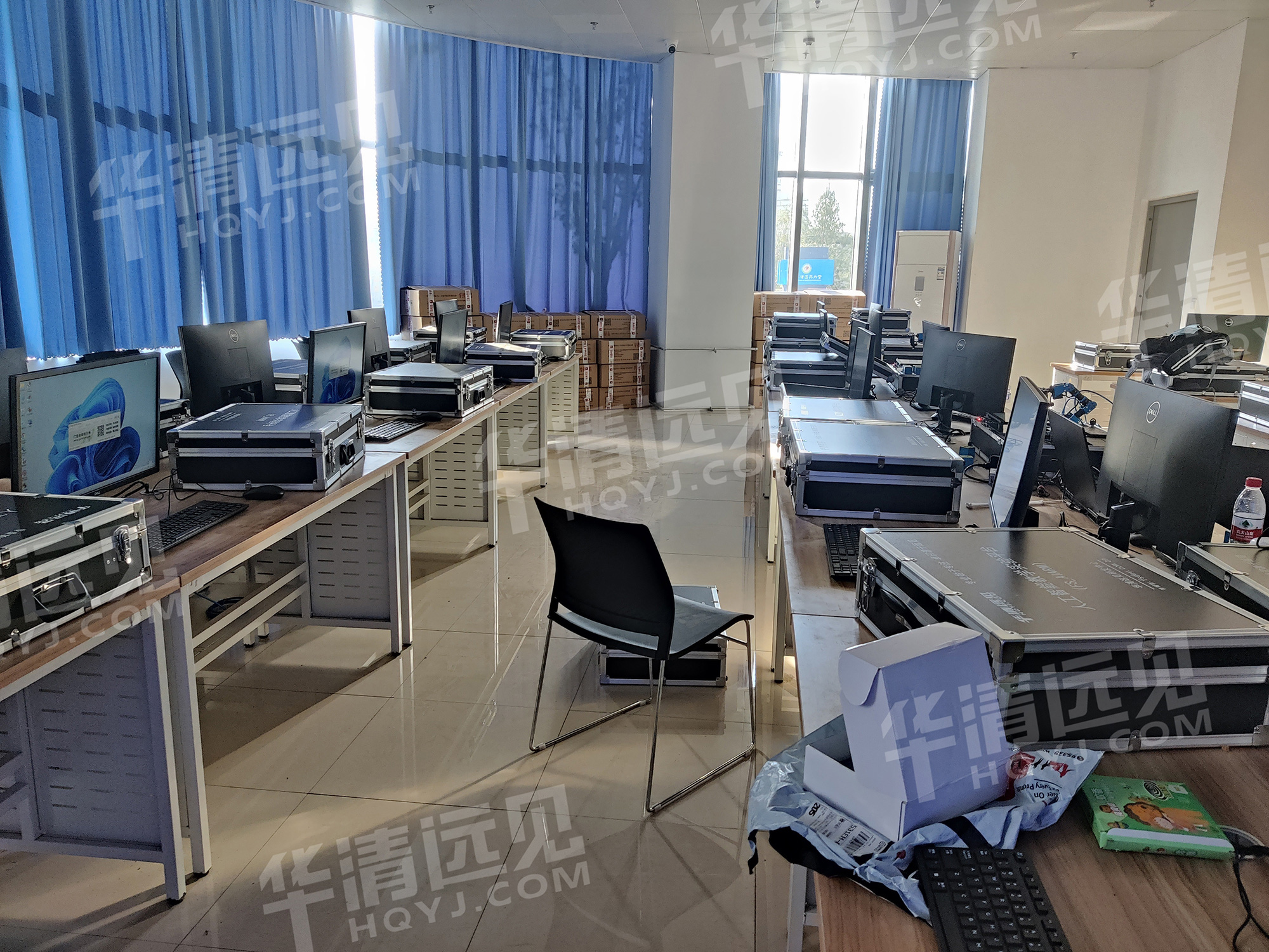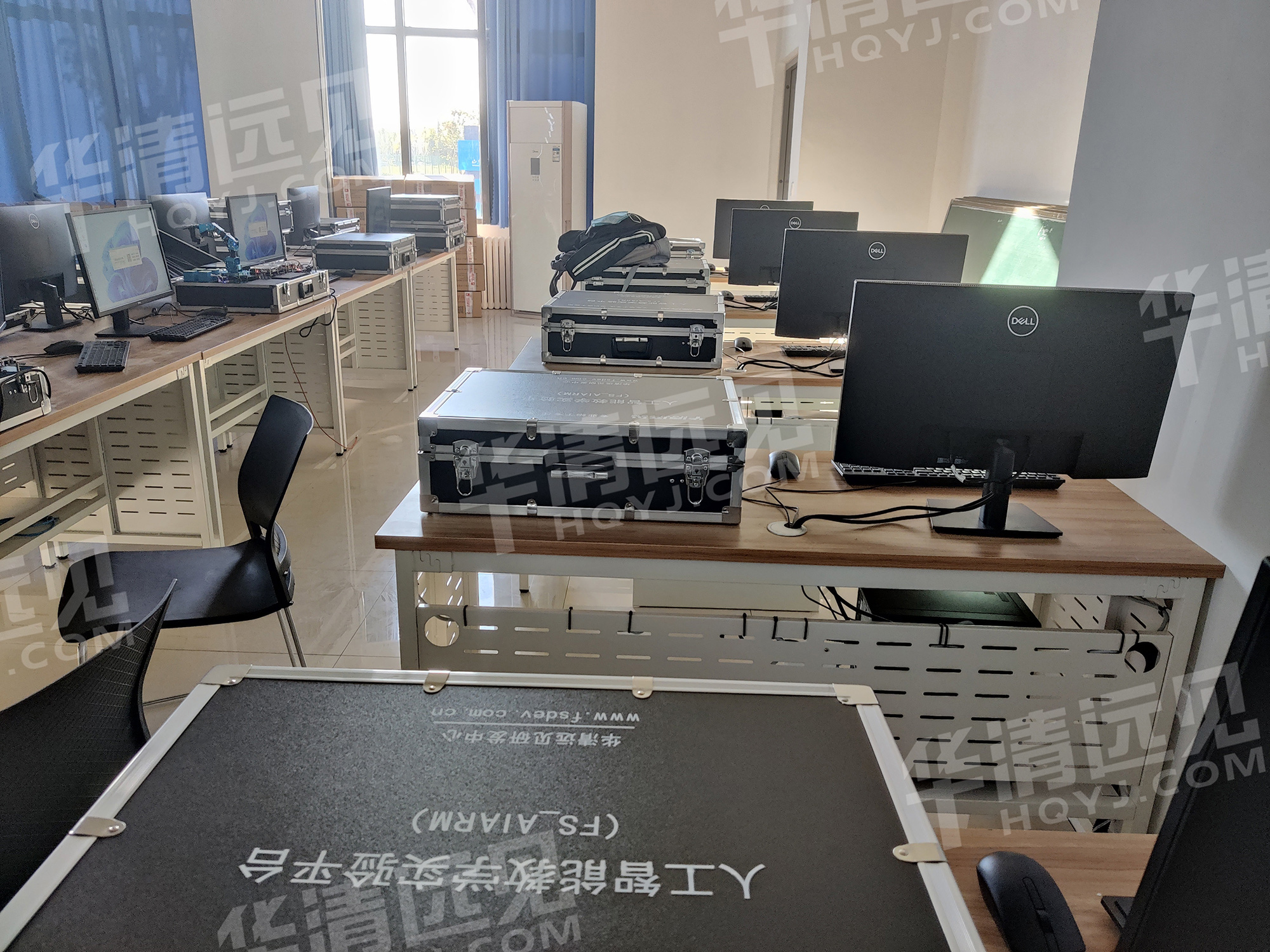 华清远见研发工程师对人工智能教学实验平台及人工智能机器人开发套件的使用及实验操作进行相关培训。
