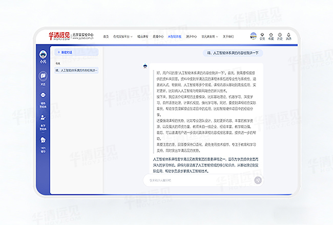 大模型智能助教系统是北京华清远见打造的AI 教学与科研一体化平台。系统以多模态大模型为核心,整合智能对话、辅助智能体、教学智能体、个性化辅导等功能,解决传统大模型教学中 “环境搭建难、理论与实践脱节、项目实战少” 的痛点,助力大模型领域 “教、学