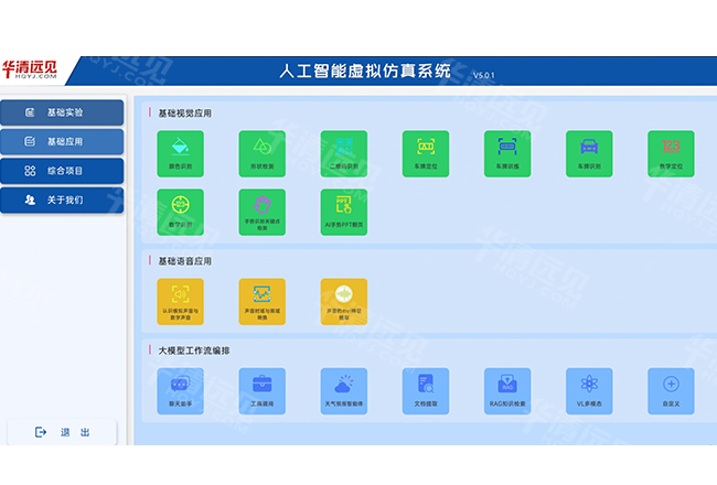 理论教学部分依托人工智能虚拟仿真教学子系统,将机器视觉、机器学习、深度学习基础、NLP - 循环神经网络、CV-NLP-Transformer、大模型工作流编排逻辑、知识库构建原理及智能对话综合项目场景(如对话意图识别、上下文理解)等抽象 AI 与 NLP 知识,通过具象化解析、可视化教学、交互式参数设置等方式具象呈现。学生可直观掌握 WordEmbedding 词嵌入原理、Transformer 注意力机制在对话中的应用、大模型 Agent 工具调用逻辑,搭配动态代码生成功能查看对话相关 Python 代码,实现从抽象概念到具象认知的高效学习。