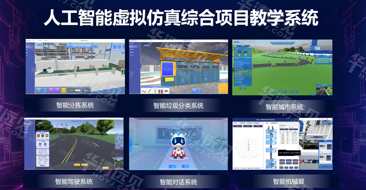 华清远见人工智能虚拟仿真系统,是针对人工智能学科建设及人才培养过程中面临的“算法难、编程难、应用场景难”三大核心痛点而精心打造的软件教学平台。它通过创新的教学模式和技术手段,为解决这些长期困扰教育领域的难题提供了一站式解决方案,助力人工智能教育的高效发展。独家首创的积木式搭建人工智能学习架构,可视化理解人工智能算法,配以专业课程、实践项目、动态代码资源包和可以迁移学习的3D产业场景,能够快速准确帮助学生构建整体人工智能学习思维并可进行自主学习和创新实验和成果展示。