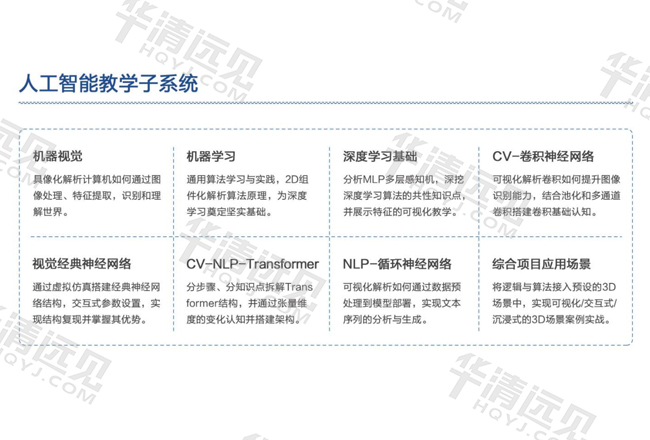 理论教学部分依托人工智能虚拟仿真教学子系统,将机器视觉、机器学习、深度学习基础、CV - 卷积神经网络、经典神经网络、NLP - 循环神经网络、CV-NLP-Transformer 及智能交通综合项目场景(如交通图像识别、交通流算法逻辑)等抽象 AI 与智能交通知识,通过具象化解析、可视化教学、交互式参数设置等方式具象呈现。学生可直观掌握机器视觉在车牌识别中的应用原理、卷积神经网络对交通场景的特征提取逻辑,实现从抽象概念到具象认知的高效学习。