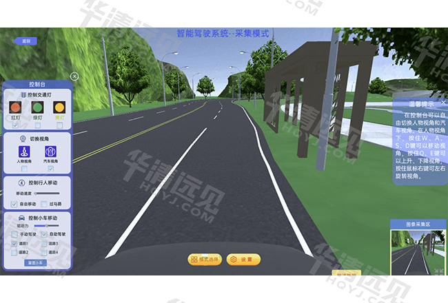 4.成果验证:在 3D 虚拟交通场景中模拟车辆行驶(支持切换人物视角 / 汽车视角,按 W/A/S/D 键移动视角),查看系统对违章闯灯、超速、车道流量的监测效果,生成设备运行报表与交通数据统计报告,符合行业项目交付标准。
