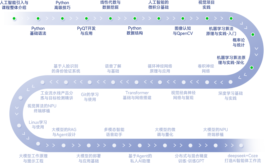 提供体系化的人工智能学习路径,从基础入门到综合项目实战,培养实战型应用型AI人才